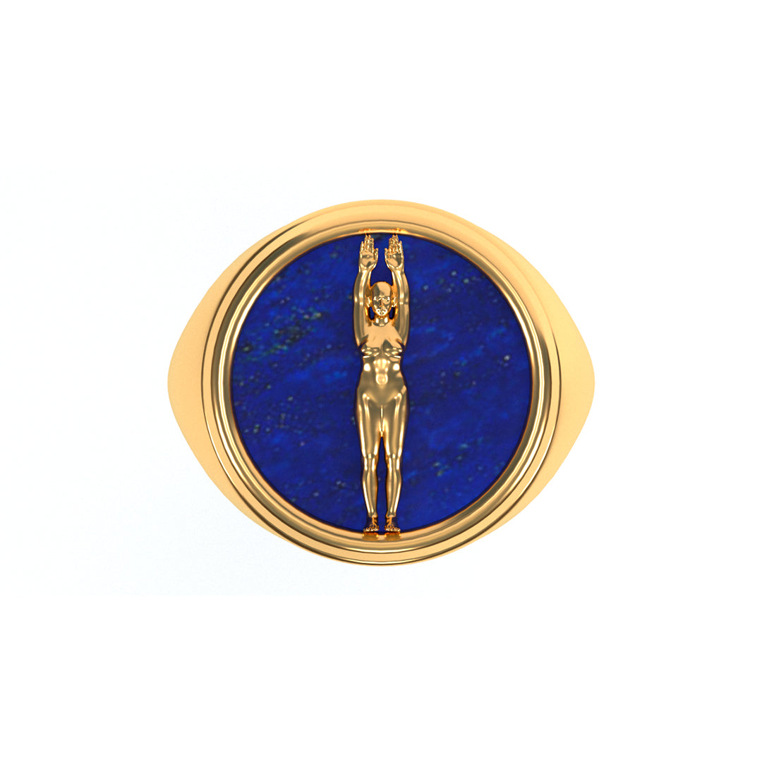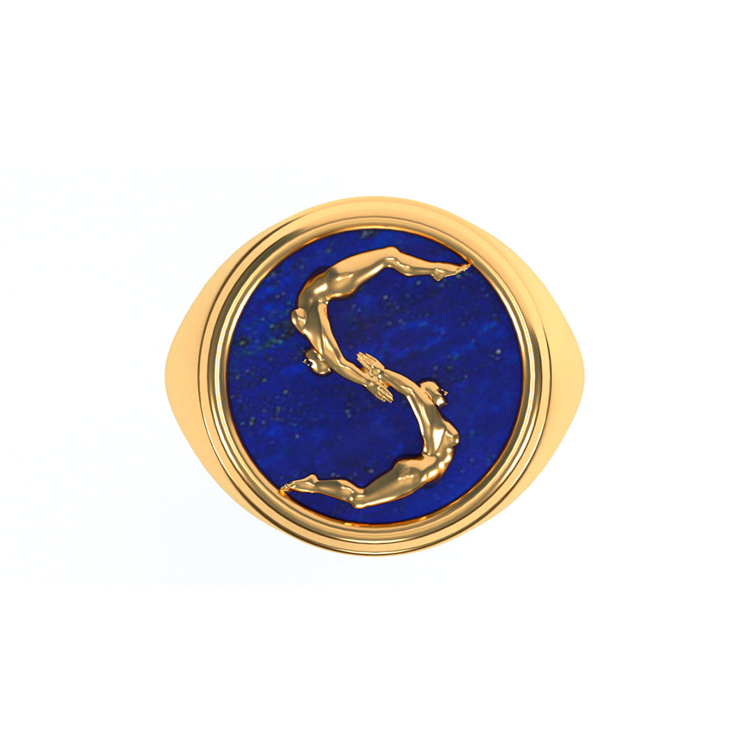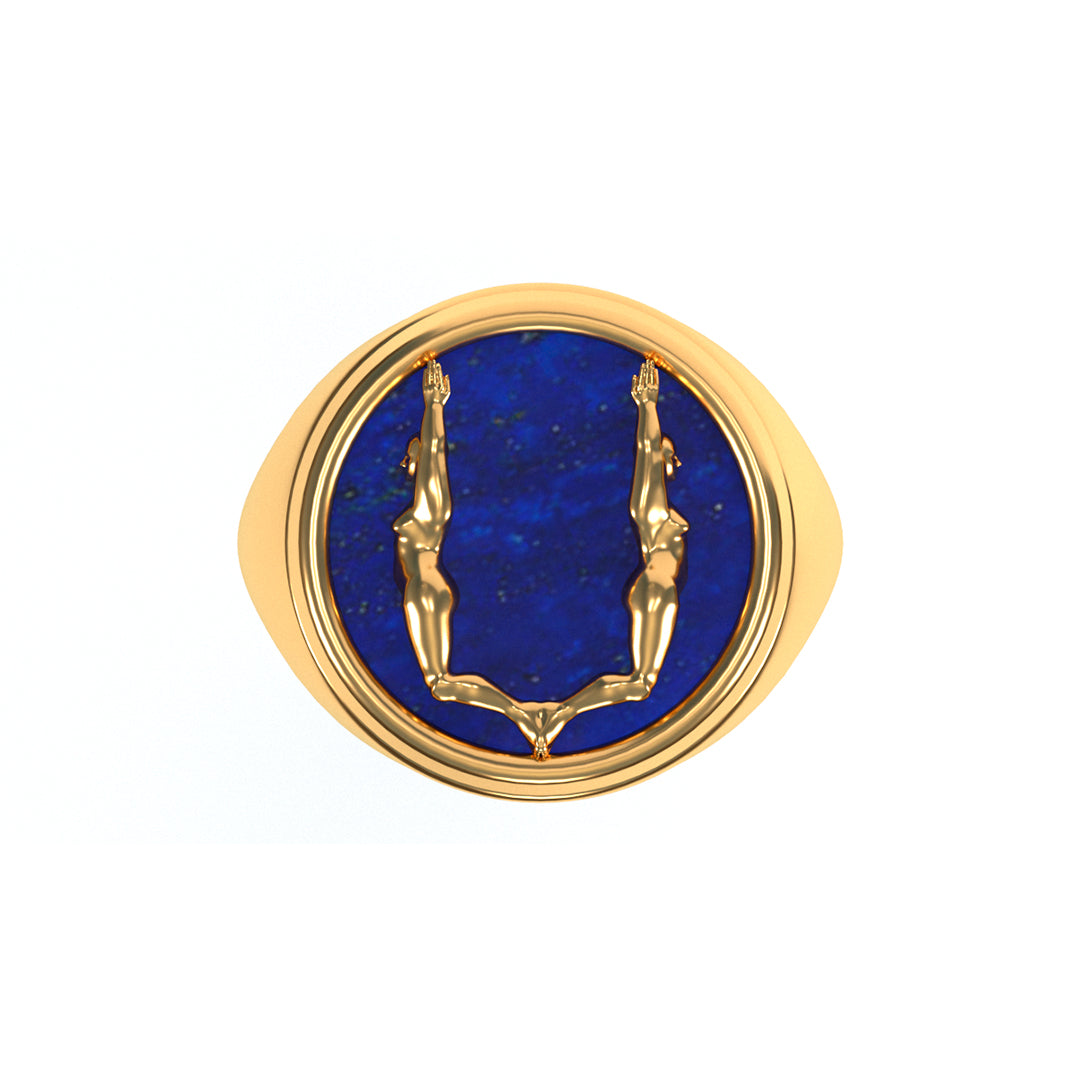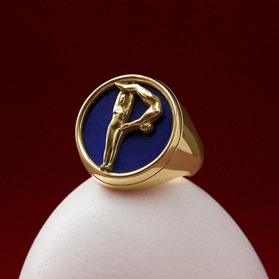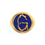 The most special version of our Alphabet Ring, now in 18k gold with Lapis Lazuli and the interior crafted like an iris of an eye, brings the exclusive project of sculptural letters by Paola Vilas in a more precious way. Designed to be worn on the pinky finger, the jewel alludes to ancient signet rings used as a form of identification and primarily to seal letters.