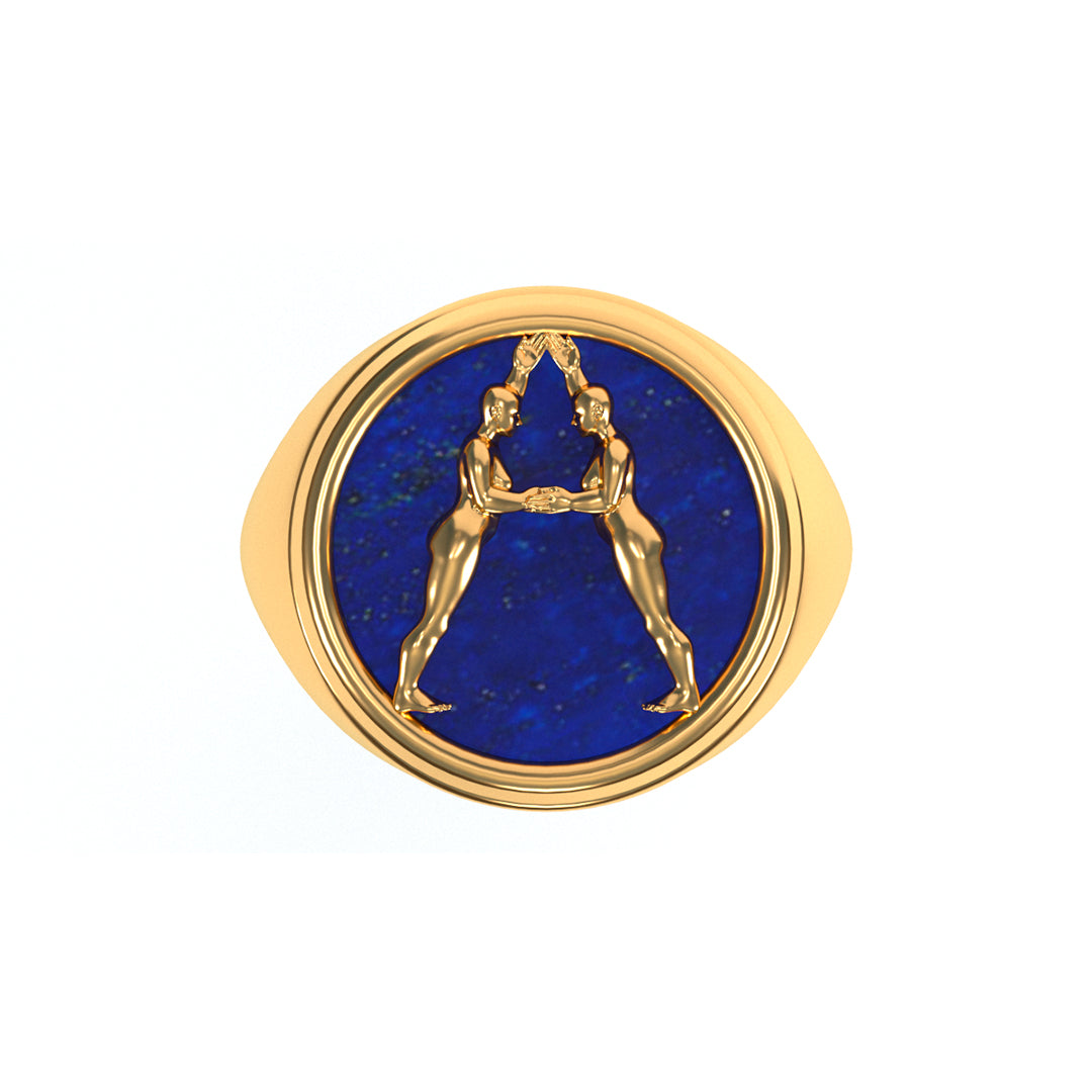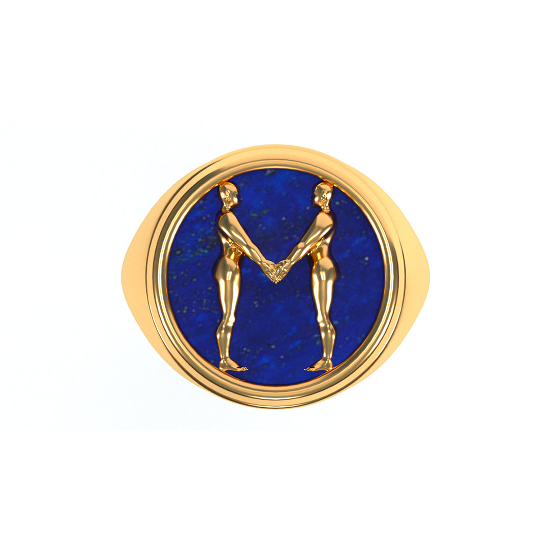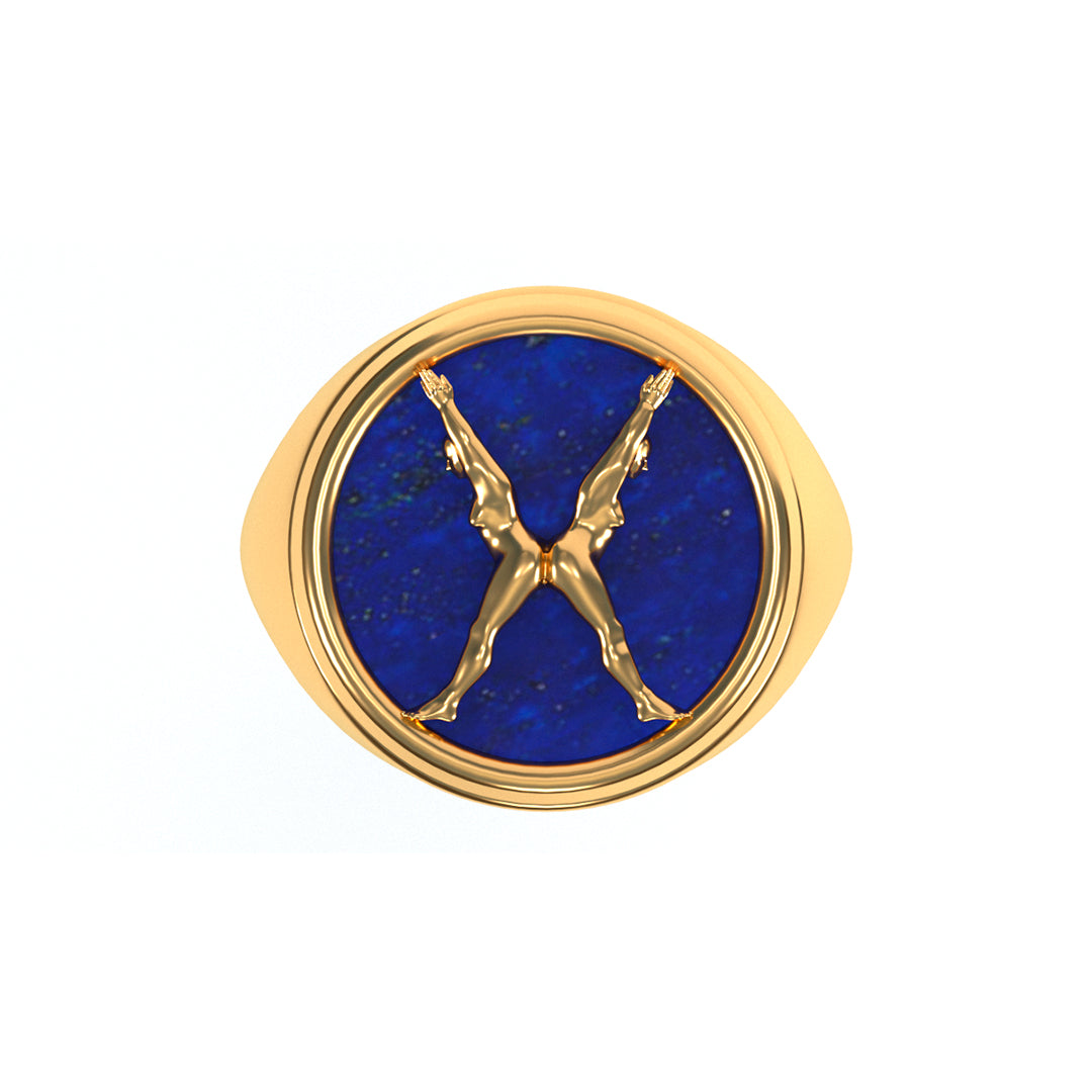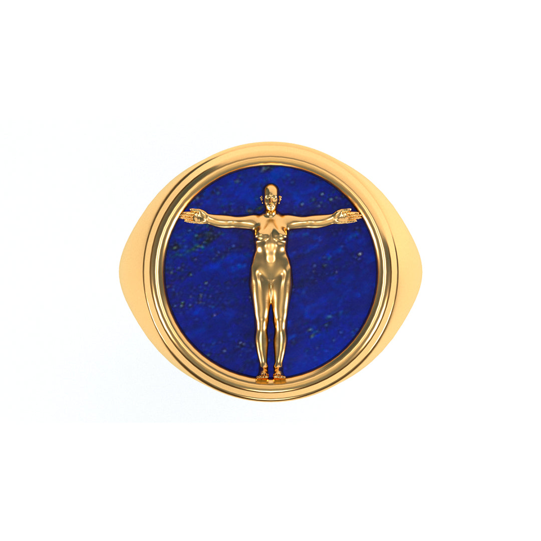 The most special version of our Alphabet Ring, now in 18k gold with Lapis Lazuli and the interior crafted like an iris of an eye, brings the exclusive project of sculptural letters by Paola Vilas in a more precious way. Designed to be worn on the pinky finger, the jewel alludes to ancient signet rings used as a form of identification and primarily to seal letters.