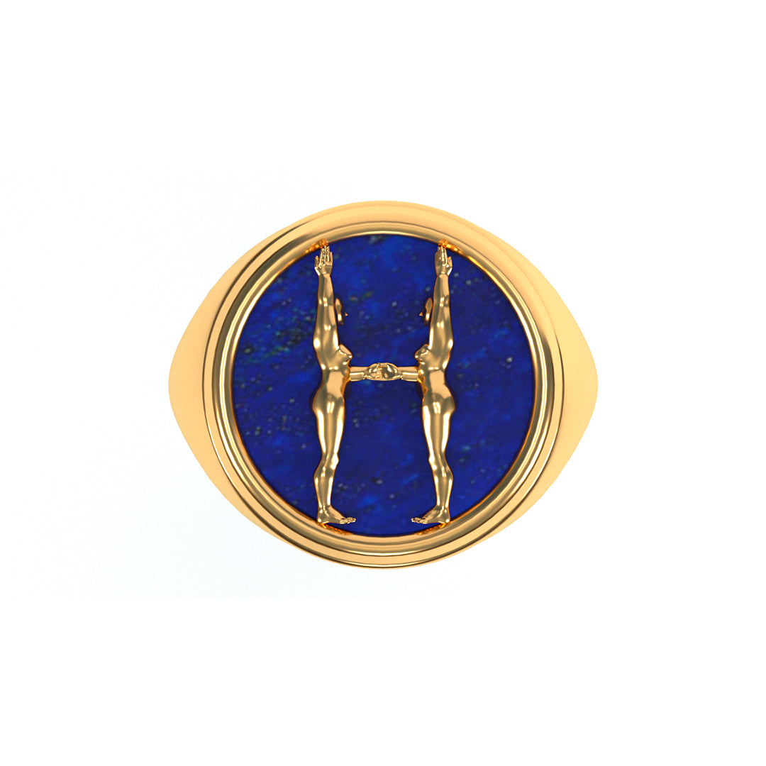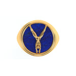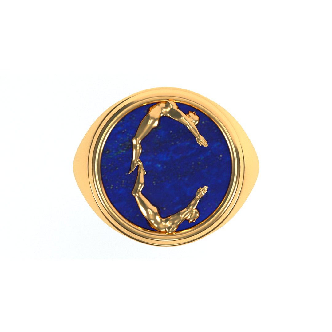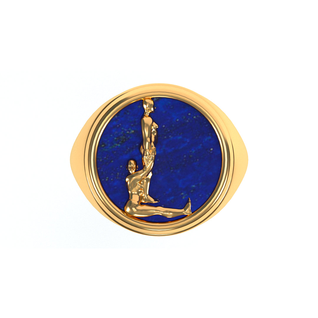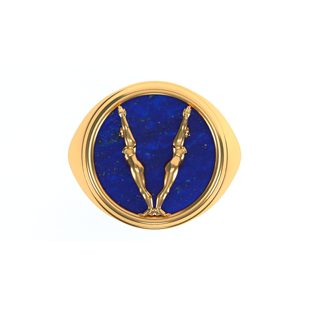 The most special version of our Alphabet Ring, now in 18k gold with Lapis Lazuli and the interior crafted like an iris of an eye, brings the exclusive project of sculptural letters by Paola Vilas in a more precious way. Designed to be worn on the pinky finger, the jewel alludes to ancient signet rings used as a form of identification and primarily to seal letters.