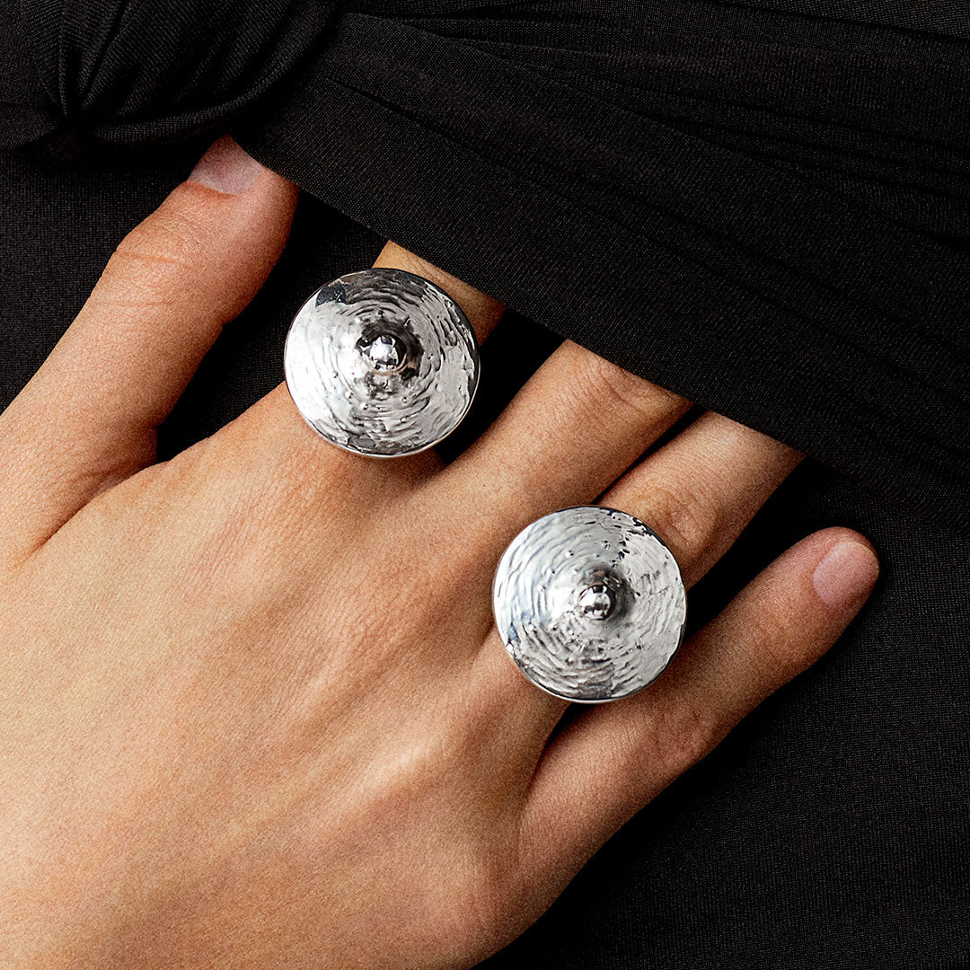 Paola Vilas Jewelry Cecília Ring is a wearable sculpture resembling nipples made of 925 sterling silver.