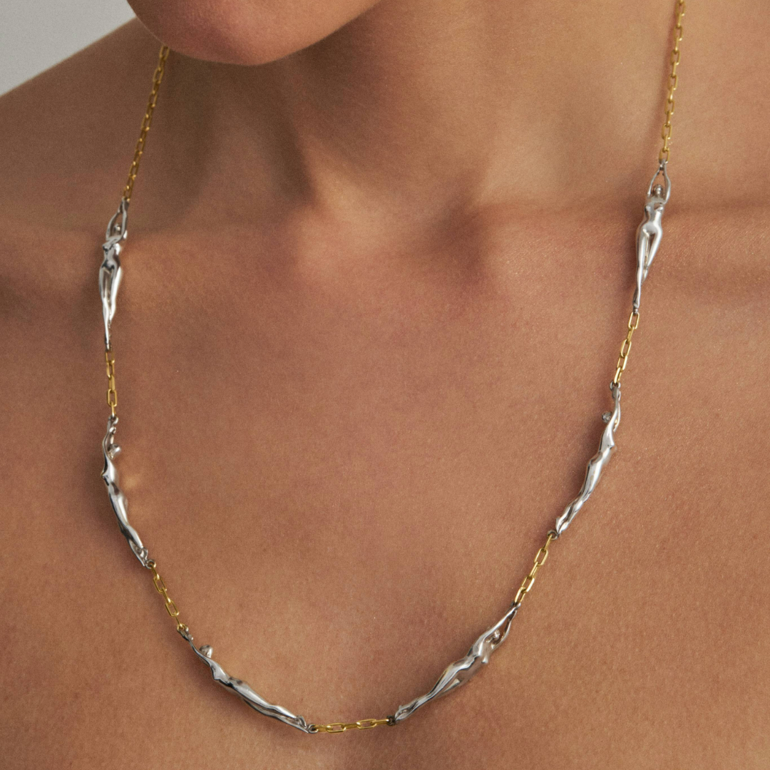 Material: Clarice Necklace, available in Sterling Silver or Sterling Silver with 18k Gold Plating.