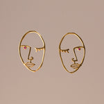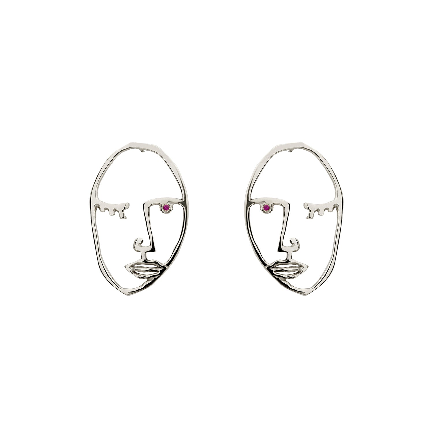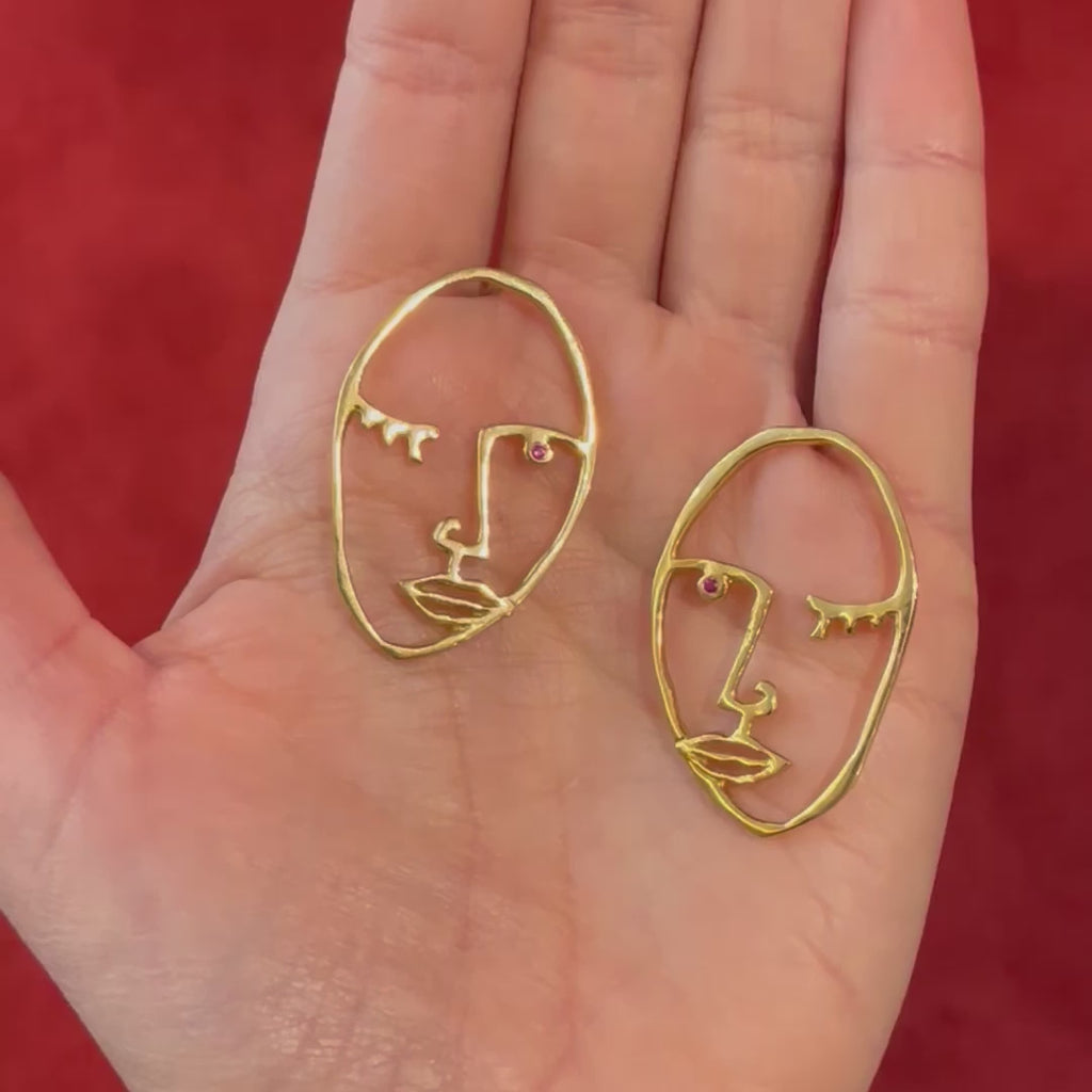Material: Cocteau Earrings, one of our signature pieces, available in Sterling Silver or Sterling Silver with 18k Gold Plating. Both with natural Ruby.
