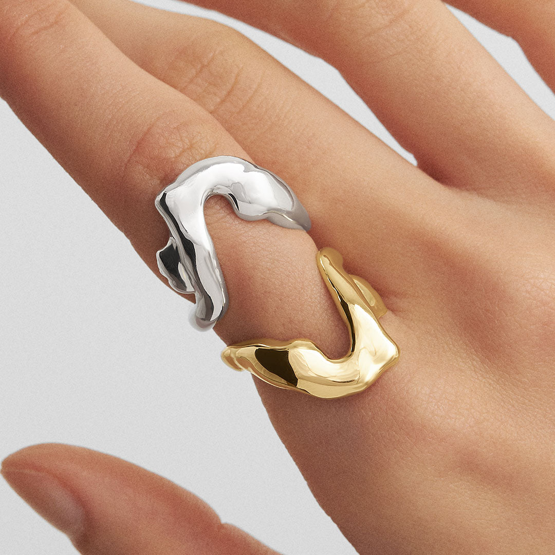 The Ada ring performs a deconstructed reinterpretation; a fluid and liquid structure alluding to our classic Louise ring.