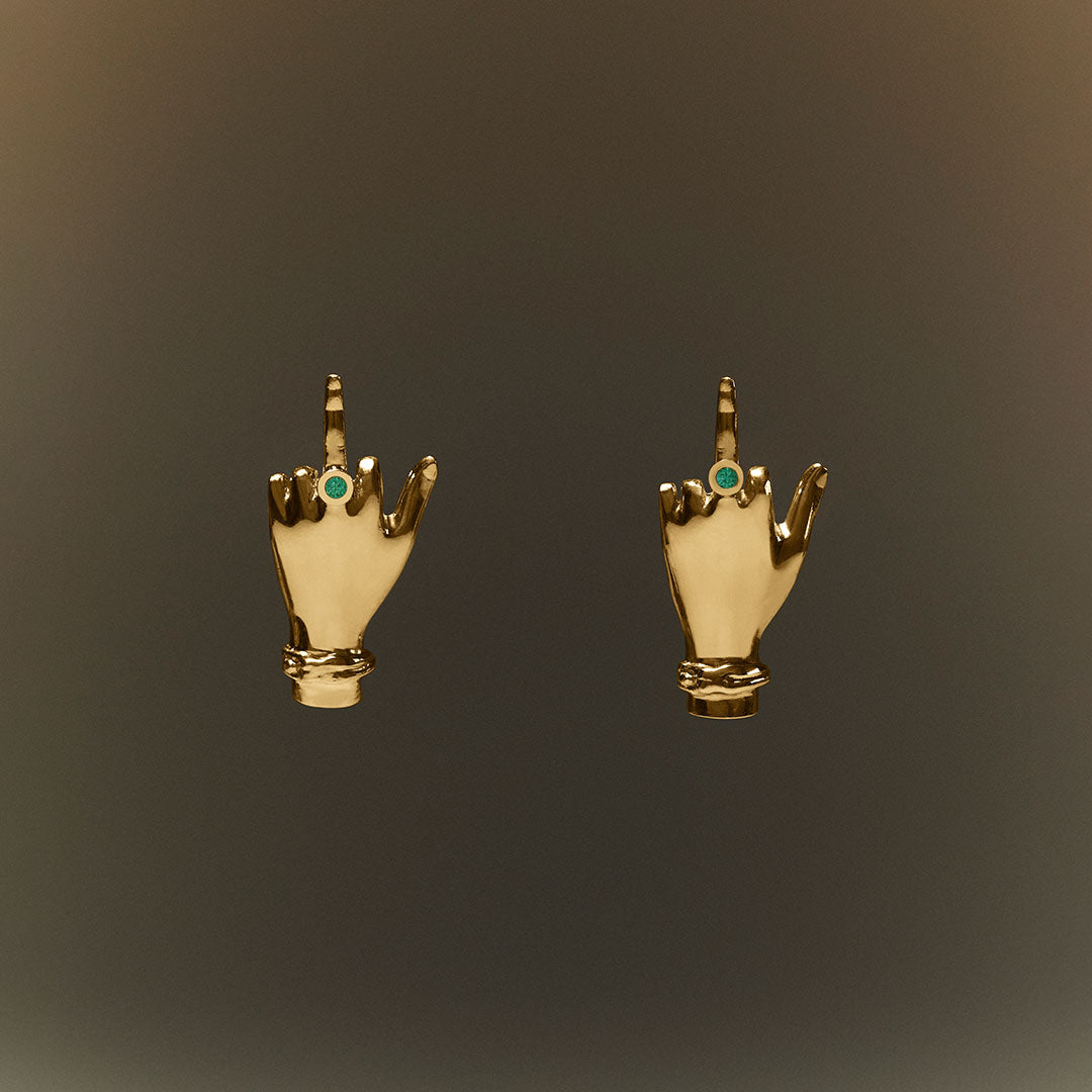 Hands are positioned as both embracing and leaving, symbolizing receptivity and abandonment. Inviting full attention to detail, the jewelry pieces are adorned with a Louise Bracelet, one of the brand's first and most emblematic pieces, alongside an emerald ring, opening a subtle door for dialogue amongst precious stones.