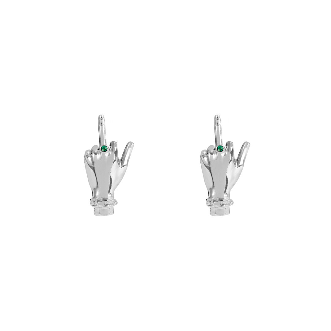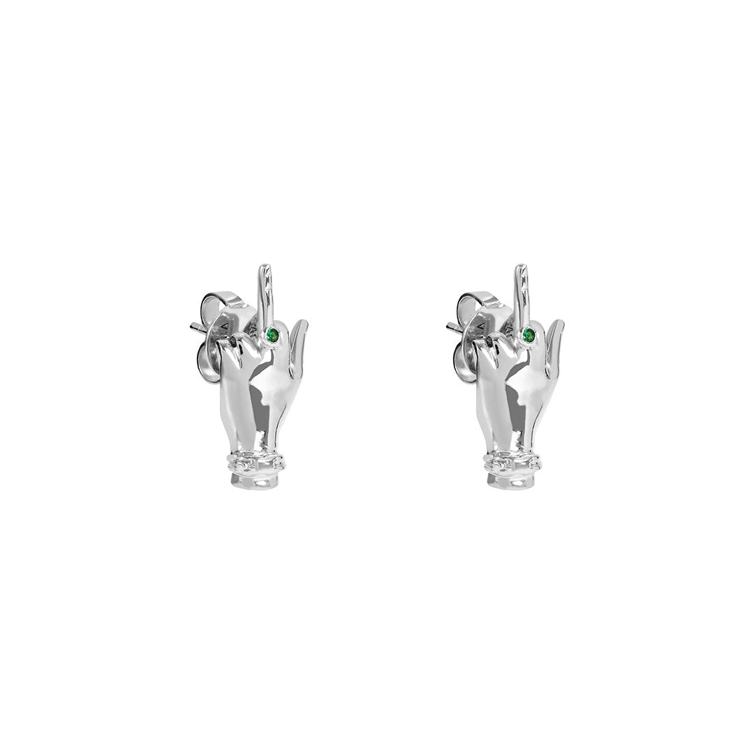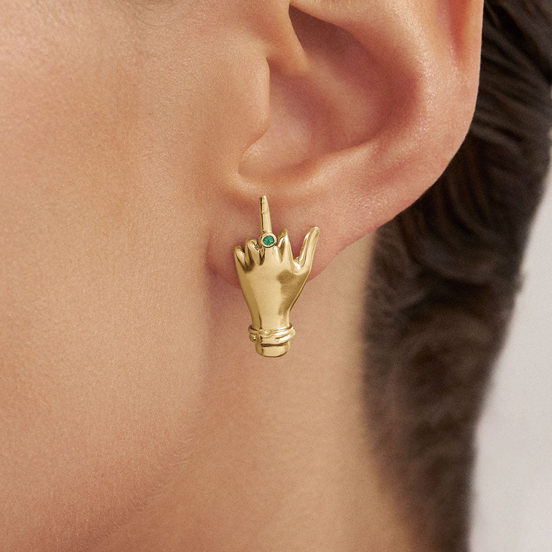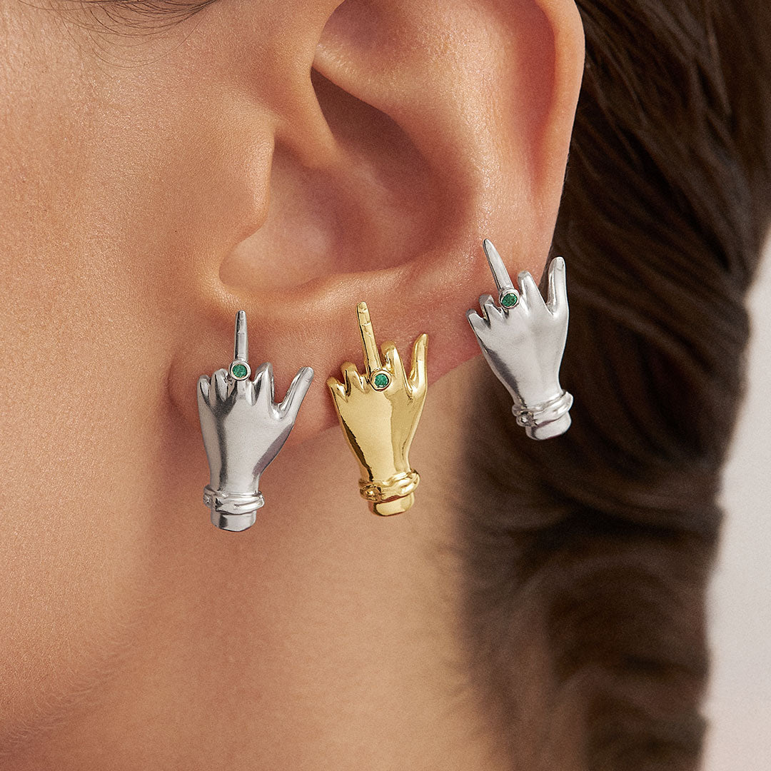 Material: Genet Earrings, available in Sterling Silver or Sterling Silver with 18k Gold Plating. Both with natural Emerald.