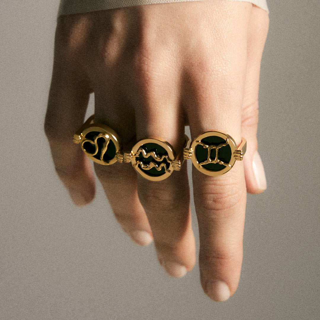 The Paola Vilas Zodiac Ring is part of the Zodiac collection, which revisits astrological archetypes through a feminine perspective. Feminine bodies sculpt the zodiac symbols, preserving the sculptural essence that defines the brand’s creations.