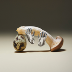 In Lui, the interaction between sculpture and the ear is the main point. The piece invites you to dive in a dream world, where everything is possible. A little hand that holds on perfectly to the ear, awakes the creativity in daily life. The Lui shape was inspired by an old door knocker, that Paola saw during a trip to Spain, and turning it upside down, is possible to easily recognize the reference. The piece was carved out of wax.