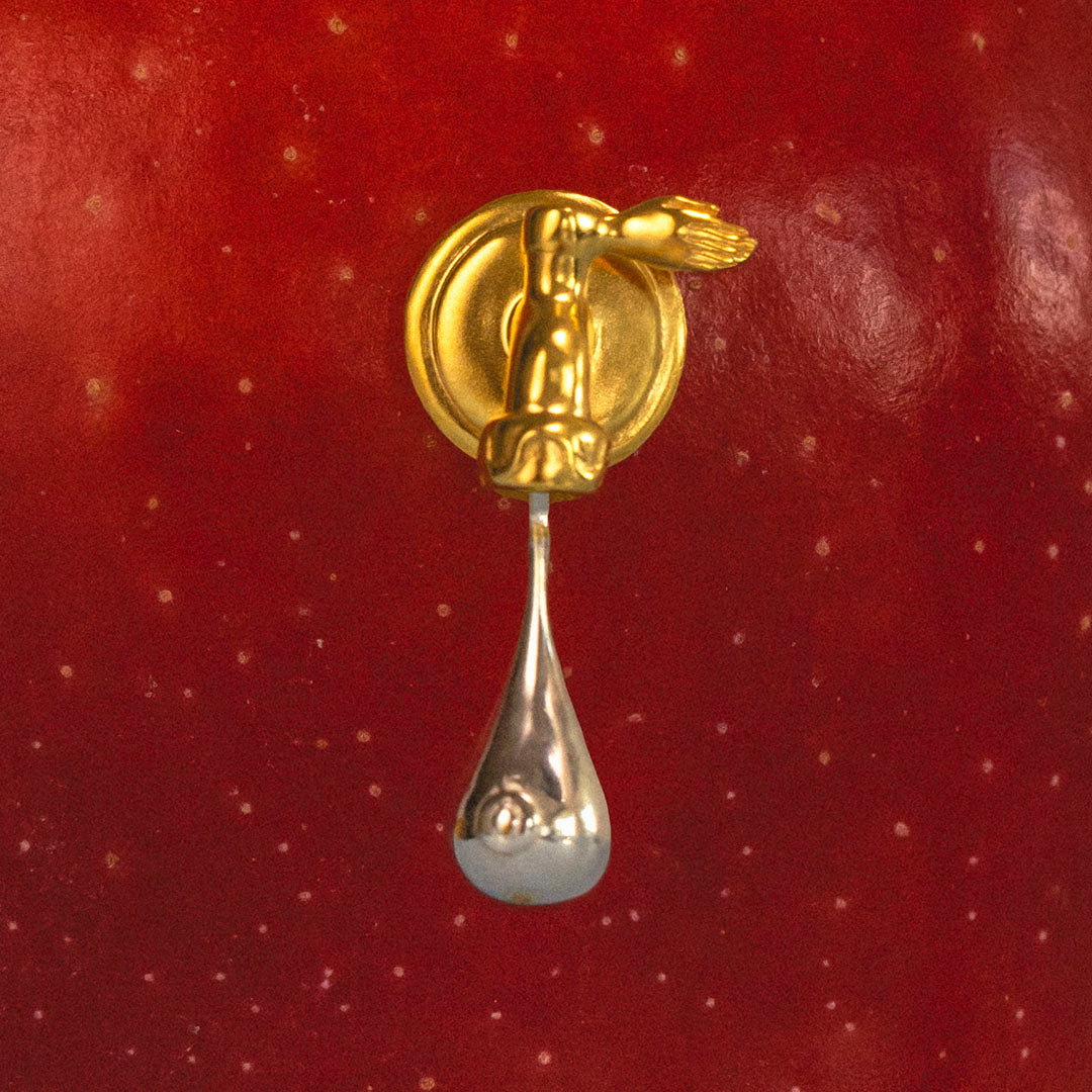 The piece Mate Leoa offers a surrealistic and feminine reinterpretation of Mate Leão, a popular drink of the beaches of Rio de Janeiro. The taps are recreated with patterns of curves, and details are shaped like hands. Drops drip and form into the shape of breasts.